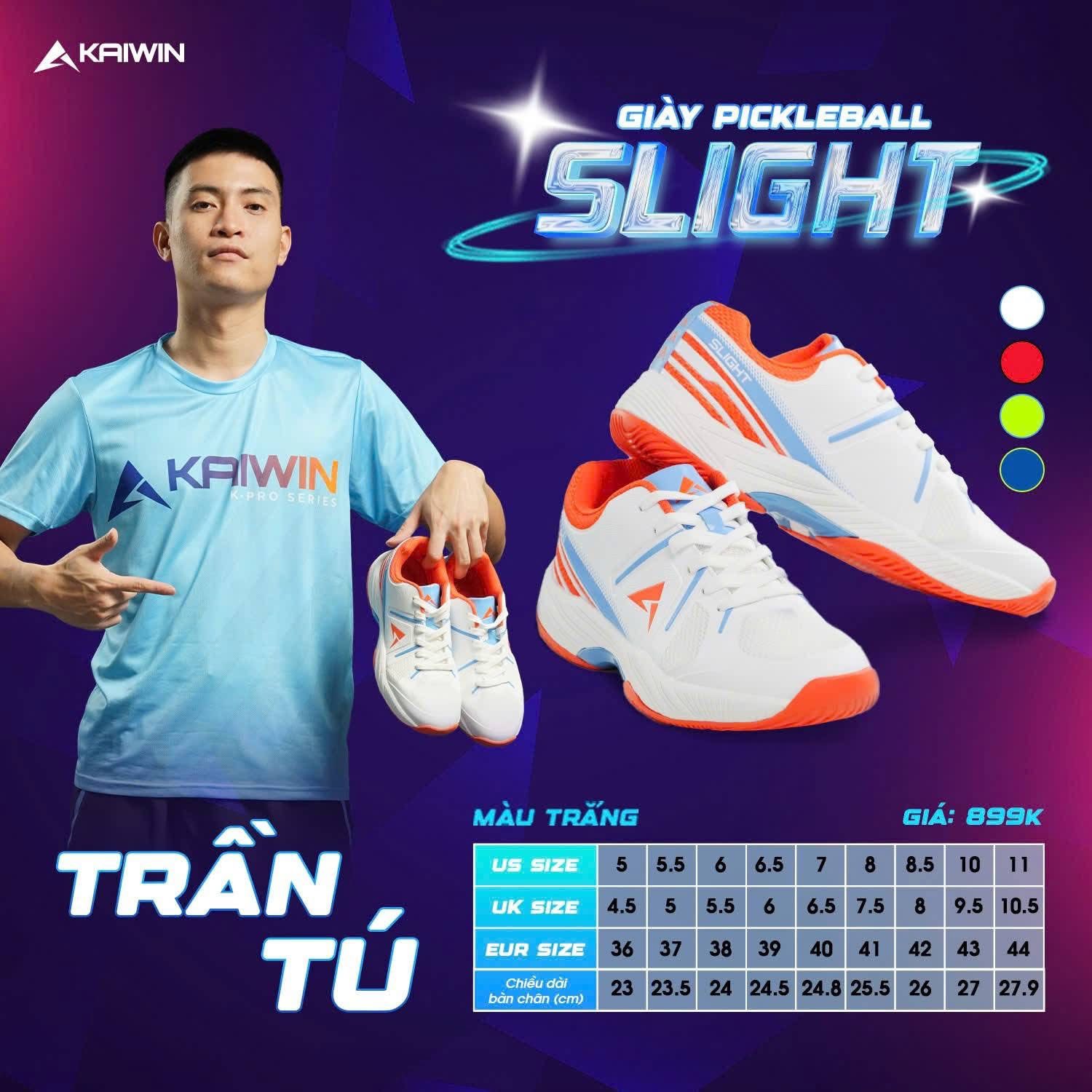 Được phát triển sau quá trình nghiên cứu thực tế từ nhu cầu thi đấu, với Kaiwin Slight, bạn có thể yên tâm chơi hết mình, từ những pha di chuyển tốc độ đến cú dứt điểm quyết định – tất cả đều trong sự kiểm soát chắc chắn.