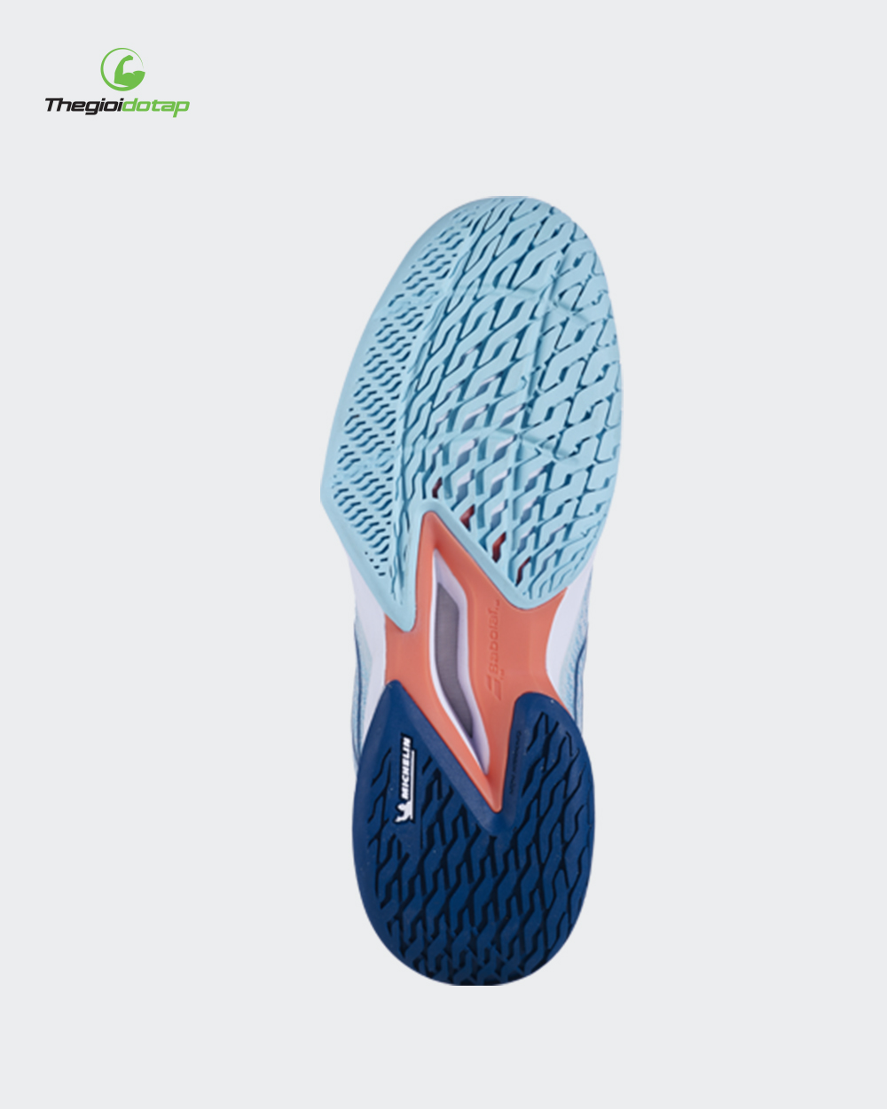 - Đế ngoài Michelin Premium DIN20 có cấu trúc gai chống mài mòn, đáp ứng tốt các pha di chuyển mạnh mẽ trong môn tennis.