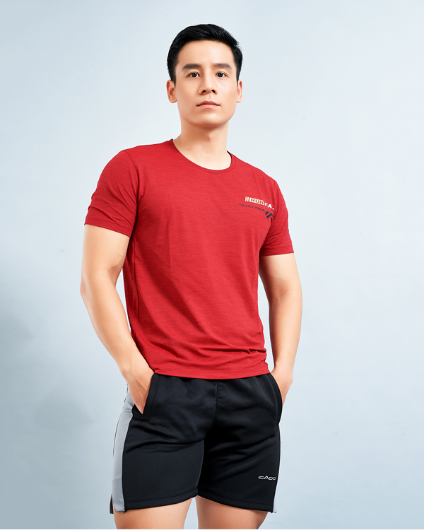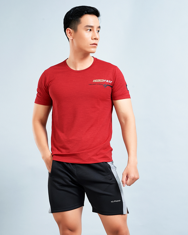 Set Tập Gym Yoga Nam Áo Cộc Tay ICADO AT18 Quần Đùi ICADO AT10 – Đỏ