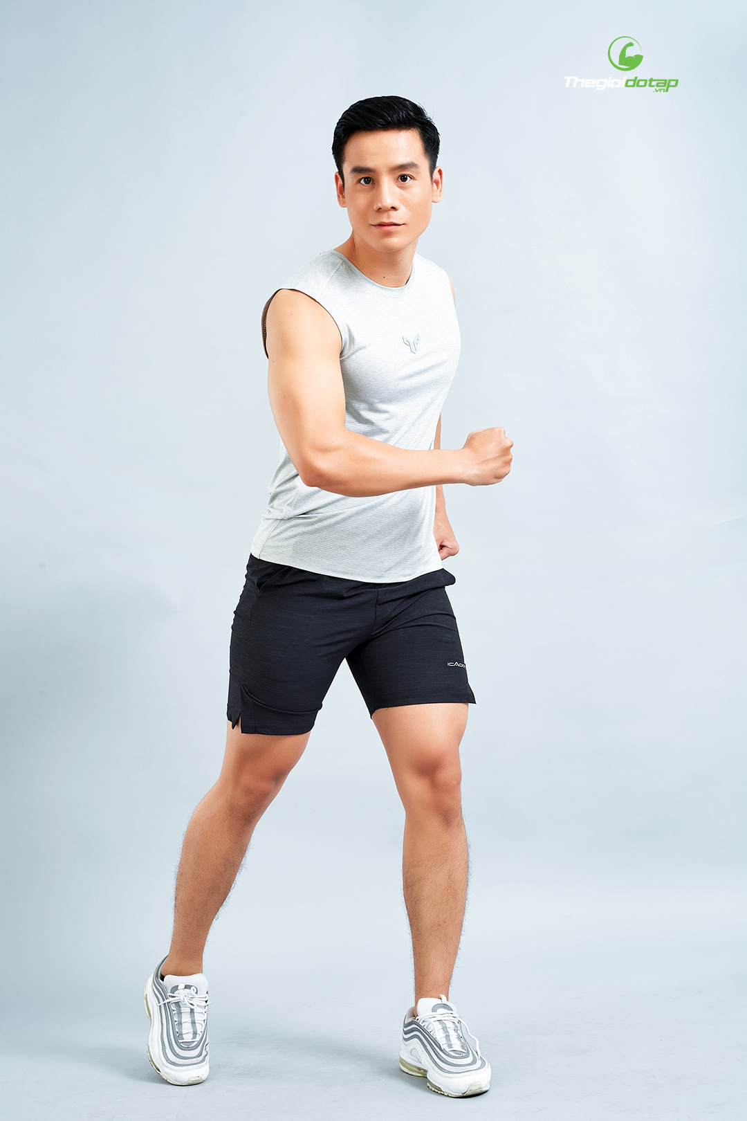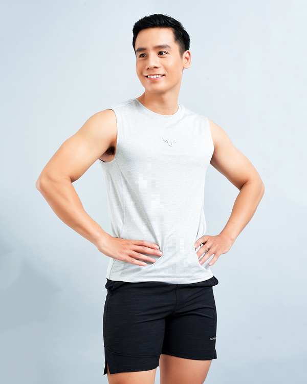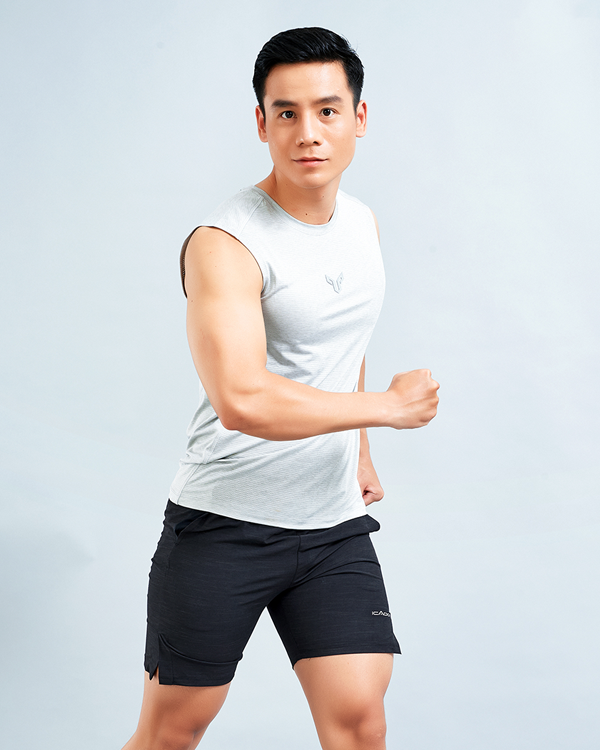 Set Tập Gym Yoga Nam Áo Sát Nách PAVO AT2 Quần Đùi ICADO AT12 – Xám Trắng