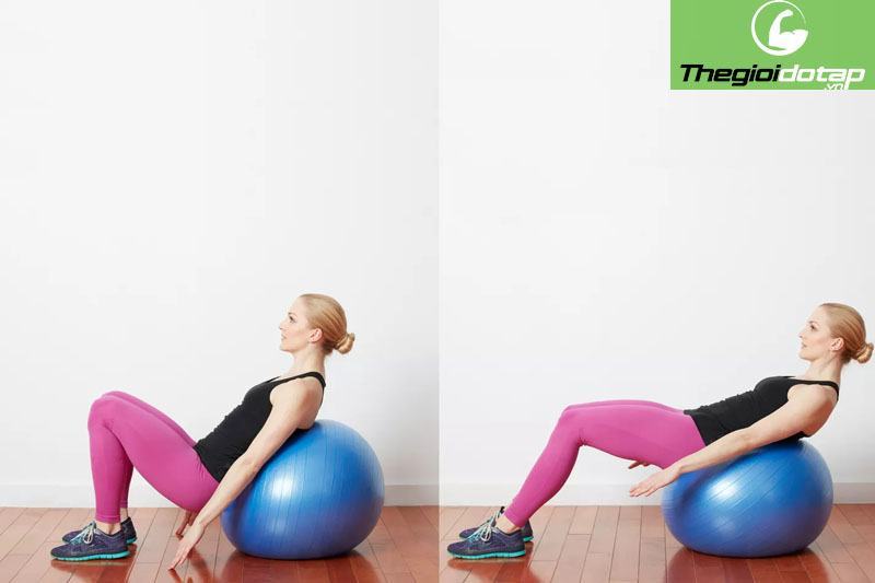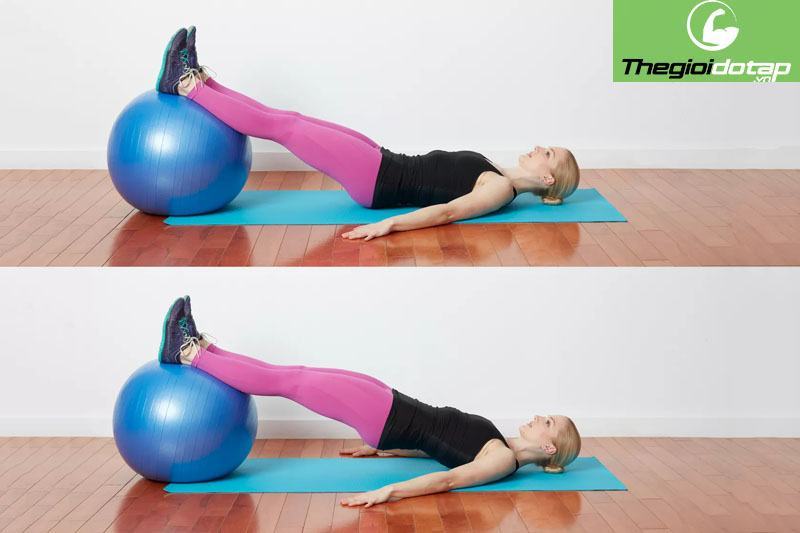 Ngồi trên một quả bóng và lăn xuống cho đến khi bạn nghiêng, đầu gối cong. Giữ chân, nhấc lên một chút và đẩy gót chân ngược lên cho đến khi đầu gối gần như thẳng. Cố gắng giữ trọng lượng ở gót chân trong suốt bài tập gym cho nữ