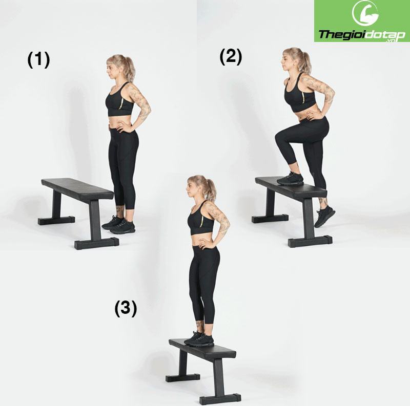 Thực hiện một bước cứ sau 4 – 6 giây. Thay thế chân bằng cách chuyển chân ở phía trên. Giữ nhịp tim của bạn dưới 150 bpm.
