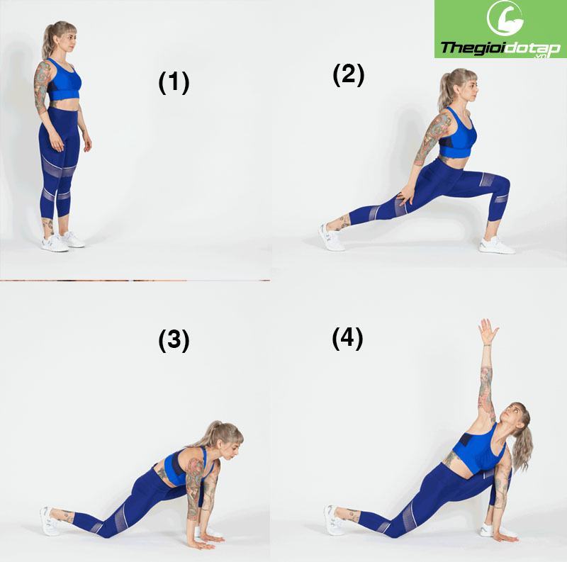 6. SPIDERMAN LUNGE WITH REACH – 6 lần mỗi bên
