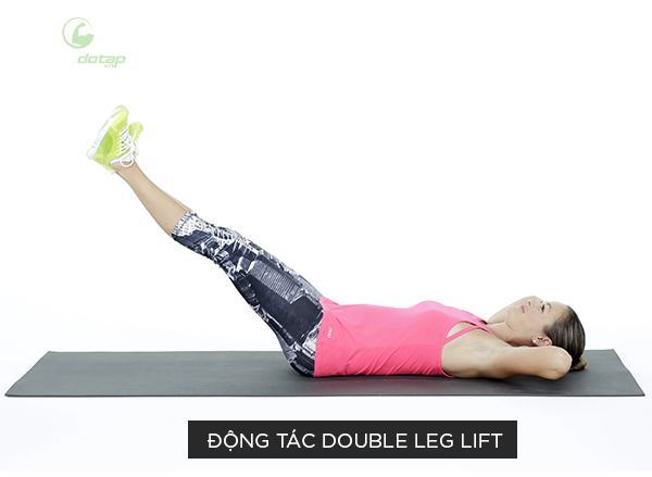 - Nâng hai chân lên cao vuông góc với mặt sàn (hít vào)
