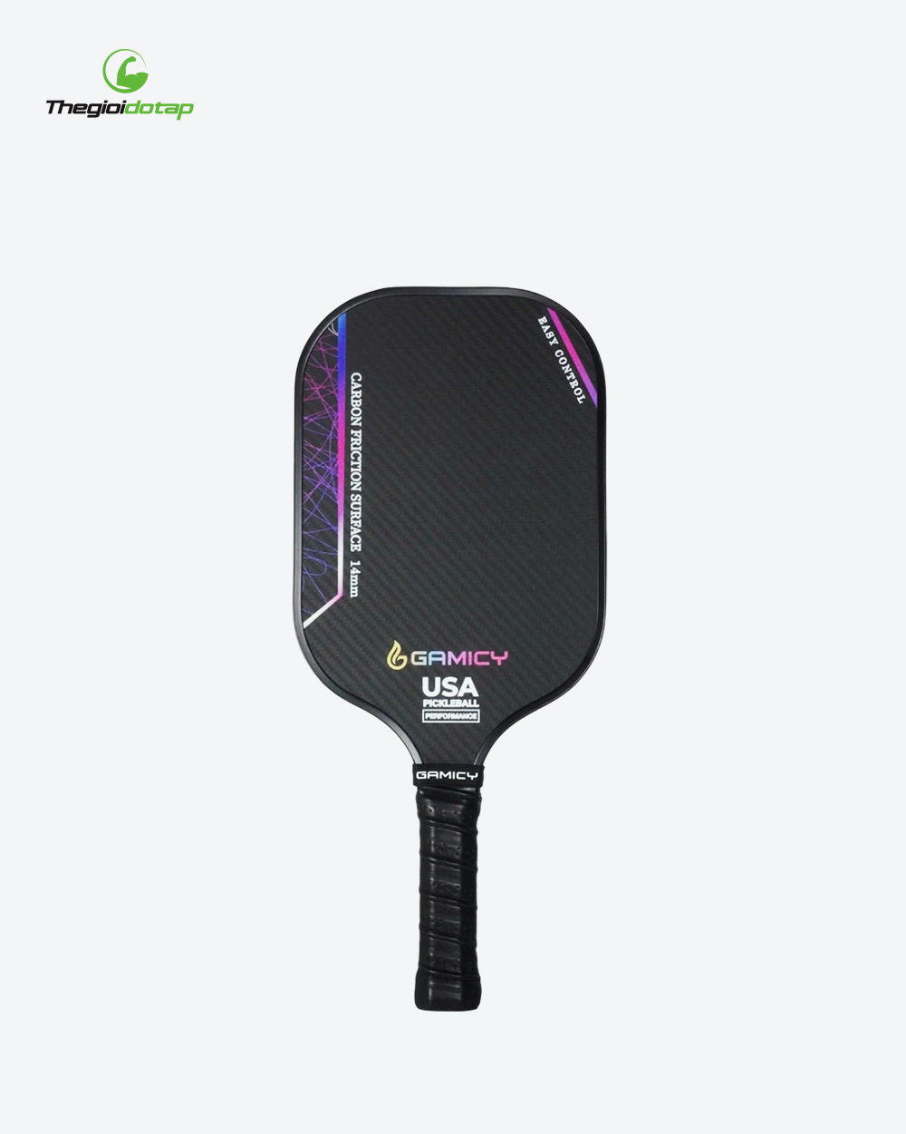 Gamicy mang đến hai phiên bản vợt với độ dày khác nhau: 14MM và 16MM, đáp ứng mọi phong cách chơi. Công nghệ Carbon T700 vân 3K làm cho vợt trở nên nhẹ nhàng, linh hoạt và bền bỉ. Bề mặt nhám với độ ma sát 96% tạo ra lực nảy mạnh mẽ và phản công nhanh chóng, mang đến trải nghiệm thi đấu chuyên nghiệp và đỉnh cao.